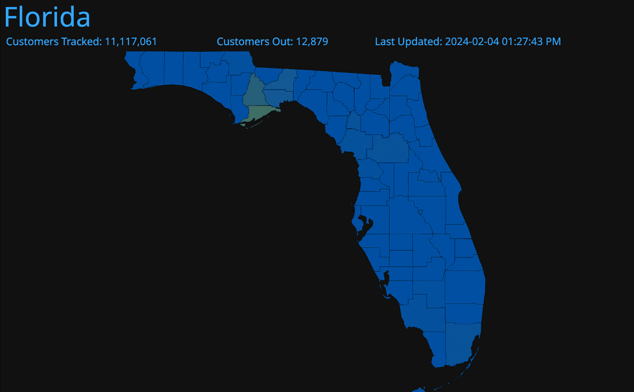 El sitio de PowerOutage.us indicaba que a la 1:39 p.m. que más de 12,000 usuarios se encuentran sin electricidad. Esa cantidad de personas era de 17,000 horas antes. La mayoría de los afectados son clientes de Florida Power & Light Company.