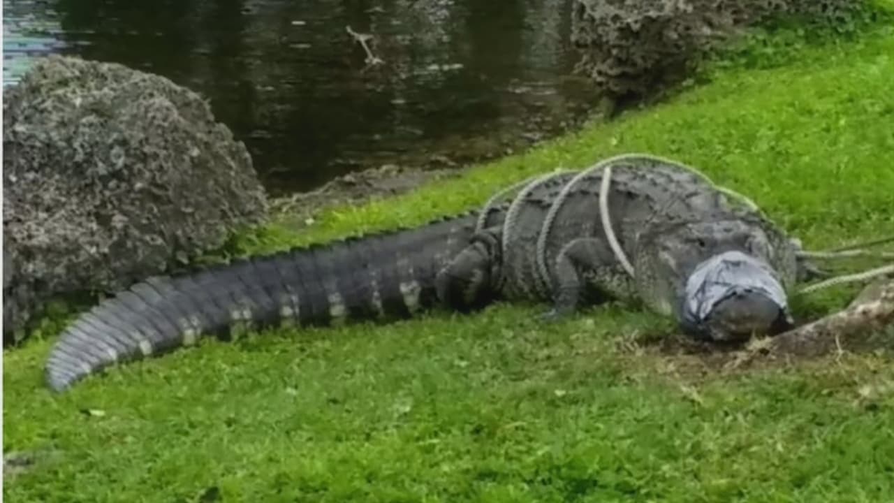 Investigan el hallazgo de un caimán atado a un árbol con la boca sellada en el suroeste de Miami-Dade