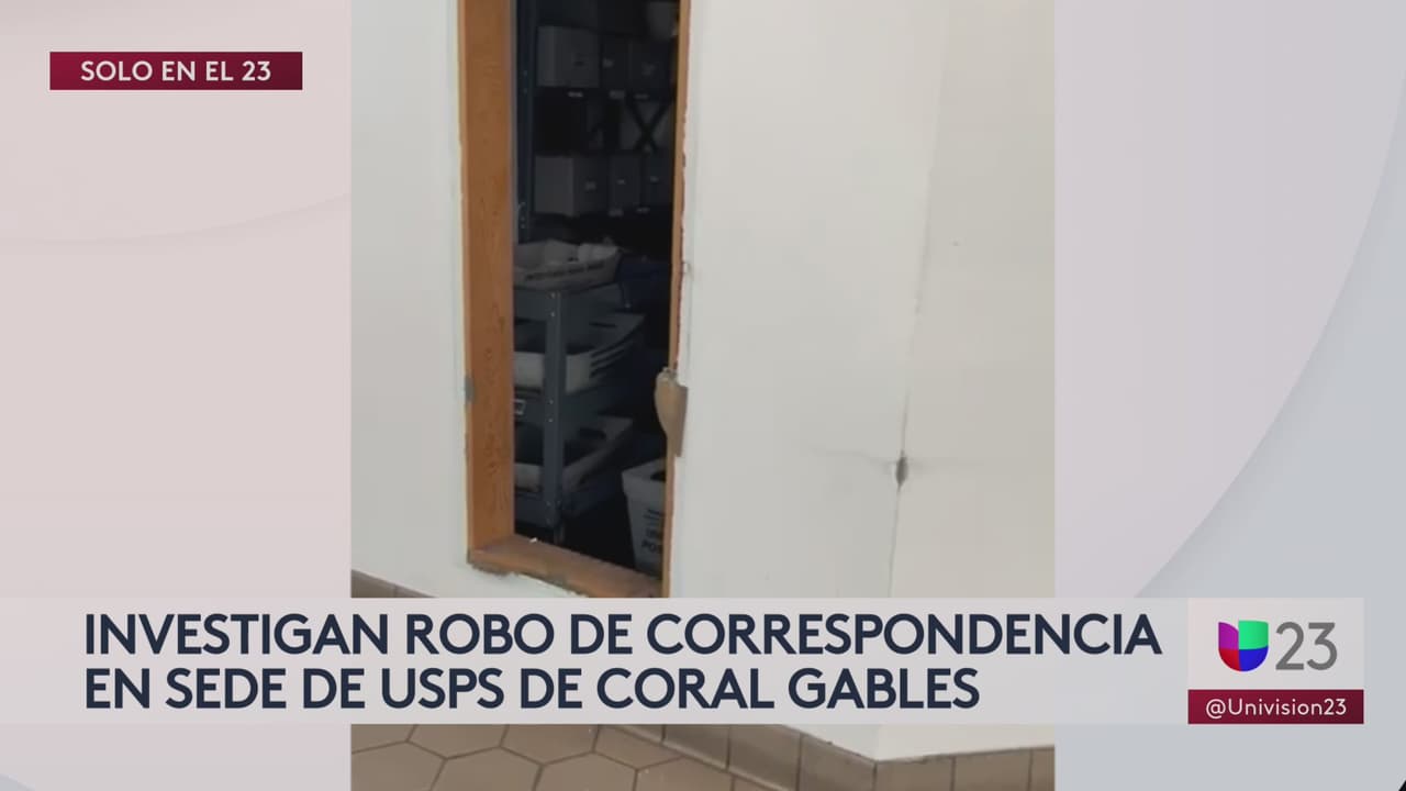 Autoridades hallaron un hueco en la sede del correo postal de Coral Gables. No se sabe hasta el momento si participó una persona o varias. El robo de correos es un delito federal.