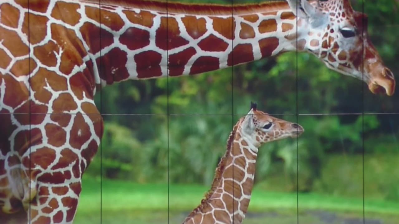 Jirafa recién nacida es presentada por primera vez ante el público en el Zoológico de Miami
