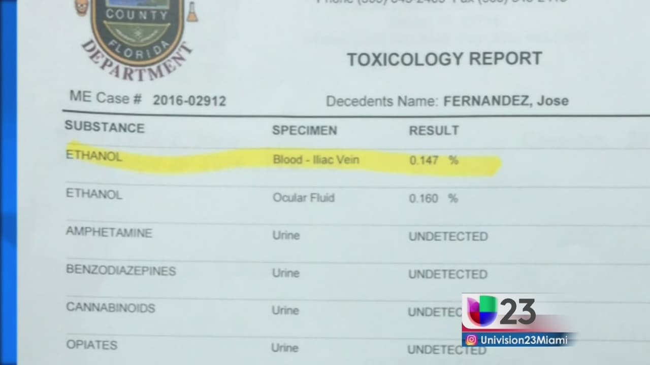 José Fernández y sus acompañantes habían bebido alcohol al momento de su accidente. Además el pelotero dio positivo para cocaína.