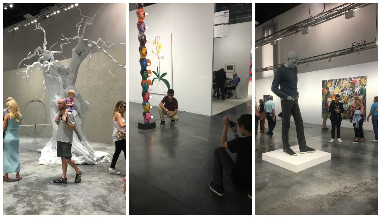 En el Convention Center de Miami una multitud intenta visitar a su cabalidad 291 galerías, donde conviven por igual obras políticas que hablan de la situación de América Central, cuadros que se burlan de un Trump mordido por Kim Jong Un y piezas estrambóticas que provocan que la gente haga enormes filas para retratarse con ellas.
