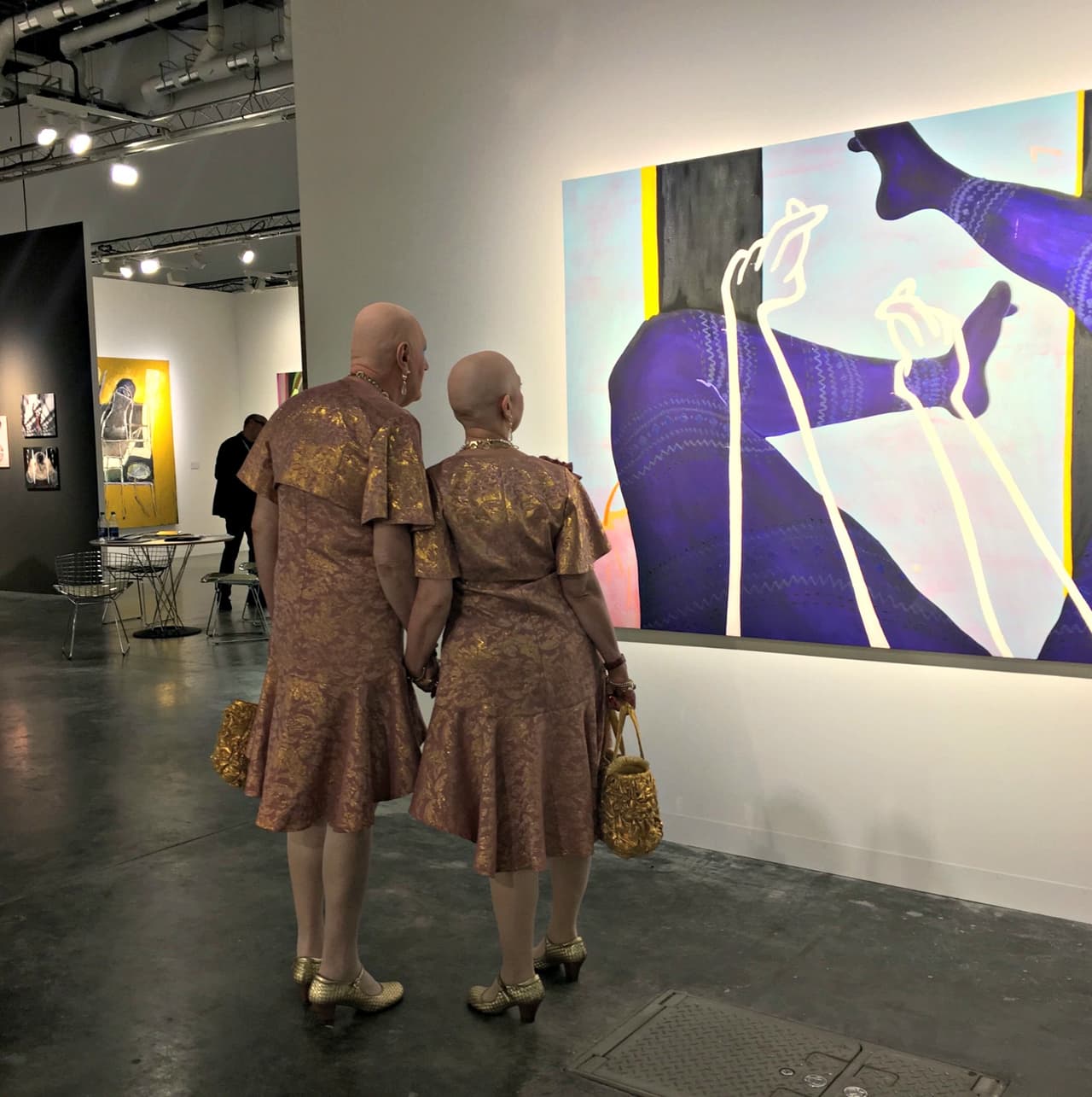Pero mientras unos se conmueven con obras que hablan de las luchas de las mujeres por sus derechos y sobre las protestas de ‘Black live matters’, otros simplemente prefieren dejar de mirar a la paredes y mejor perseguir a la inquietante pareja de artistas Eva y Adele que, vestidos de la misma manera, con bellos trajes de brillantes, perlas y la cabeza rapada para que no se sepa quién es la esposa y quién el esposo, caminan por los pasillos de Art Basel Miami como si gritaran 'nosotros somos la gran obra de arte'.