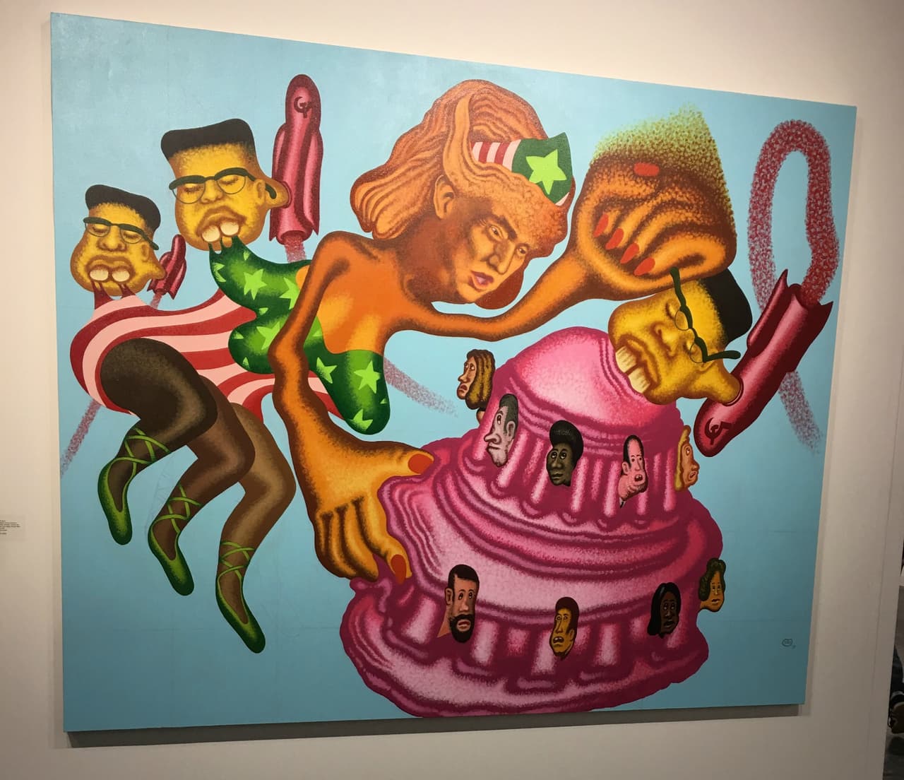 ‘Donald Trump as the first woman president’ es la obra de Peter Saul, un artista californiano de 83 años cuyas pinturas de rasgos gruesos y desproporcionados siempre han inmortalizado a ex presidentes como George Bush o Ronald Reagan. Para Art Basel 2017, Peter Saul ha creado el retrato infaltable de Donald Trump.