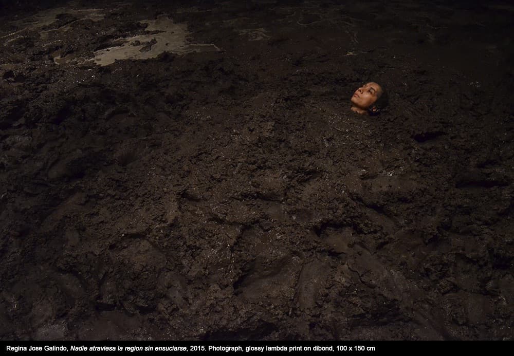 Al lado de este video, que captura los ojos de muchos desprevenidos visitantes de la feria de arte Art Basel que se lleva a cabo en Miami por estos días, otra imagen chocante: la de la misma artista enterrada completamente en fango, apenas con la cabeza afuera para poder respirar. “En América Central siempre hay primavera, como siempre hay conflicto, como siempre hay lucha. Para cruzar Centro América, tú tienes que cruzar la muerte y así poder vivir”, explica la artista en el catálogo de Prometeo Gallery, una galería italiana basada en Milán conquistada por años por esta latina.
