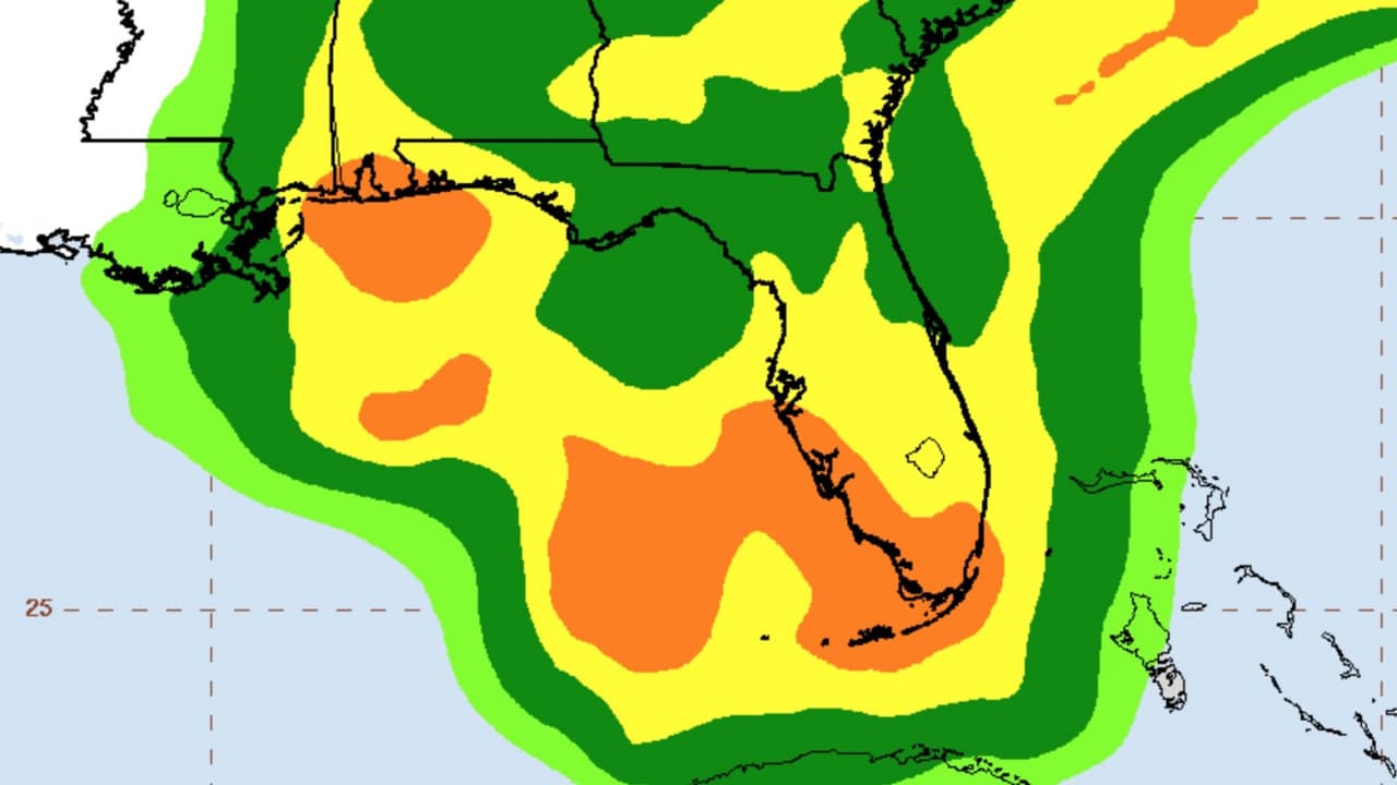La situación en el sur de Florida y el resto de la península será de periodos de fuertes lluvias y vientos, incluidos tornados aislados.