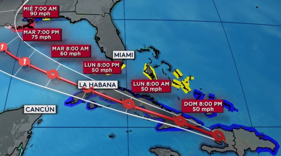 Lluvias intensas y vientos afectan el oriente de la isla. Durante la madrugada continuará desplazándose por territorio cubano y causará efectos todo el lunes, para luego seguir su rumbo por el Golfo de México y convertirse en huracán de categoría 1. En los Cayos de Florida se mantiene la vigilancia por tormenta tropical.