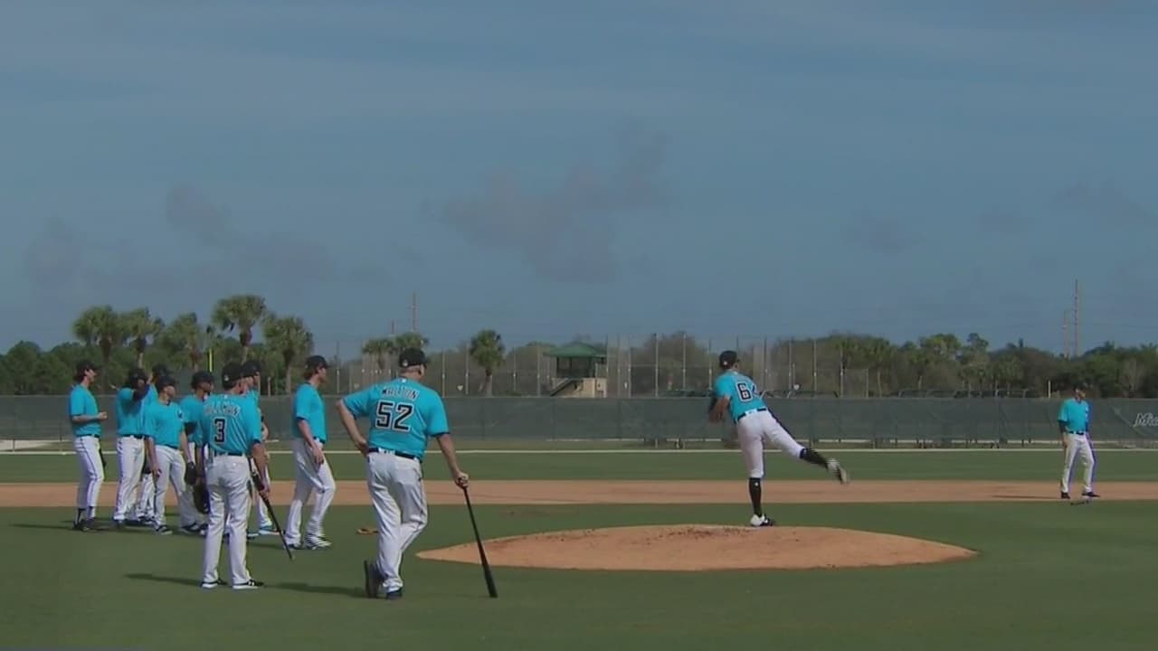 Lanzadores y receptores de los Marlins entrenan en Jupiter de cara al inicio de la temporada