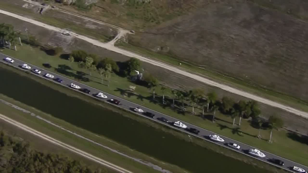 Largas filas de carros con botes para llegar a marina reabierta en Miami-Dade