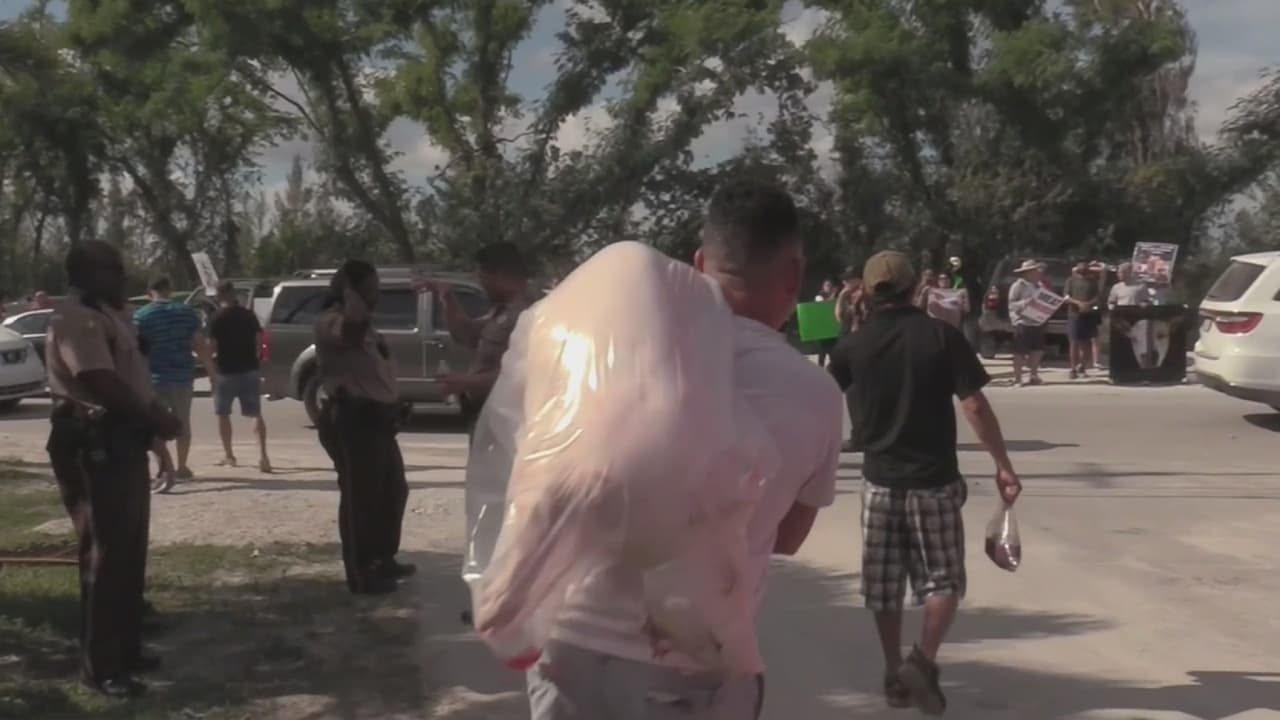 Largas filas en Hialeah para conseguir la tradicional comida de Noche Buena