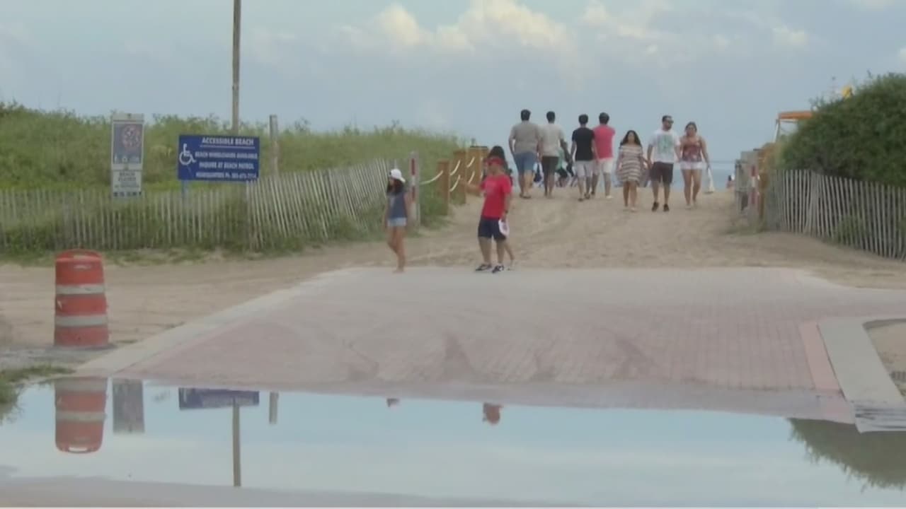 Las lluvias e inundaciones no detienen a quienes llegan a disfrutar de las playas en Miami Beach