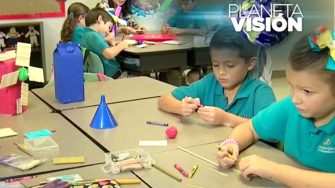 La meteoróloga Paola Elorza acompaña en Planeta Visión a estudiantes de segundo grado de la escuela Downtown Doral durante la construcción de la estructura. El libro Mi primer Quijote de Ramón García Domínguez inspiró a la docente del curso para hacer el ejercicio.