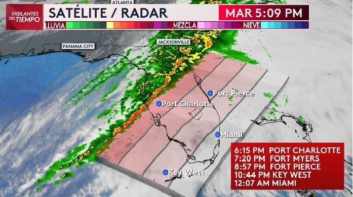 Una línea de fuertes tormentas que se dirige al sur de Florida traería algunas tormentas severas con presencia de tornados aislados al área. Esto lo que le espera a Miami-Dade y Broward durante la noche del martes y madrugada del lunes. El mal tiempo relacionado con este sistema ya afectó el oeste y centro del estado.