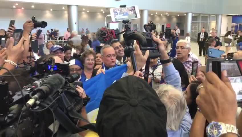 Silvio Báez fue recibido con cantos y ovación por miembros de la comunidad nicaragüense en el aeropuerto internacional de Miami, este martes por la tarde. El sacerdote quien ha sido crítico del régimen de Daniel Ortega fue transferido a la ciudad del Vaticano.