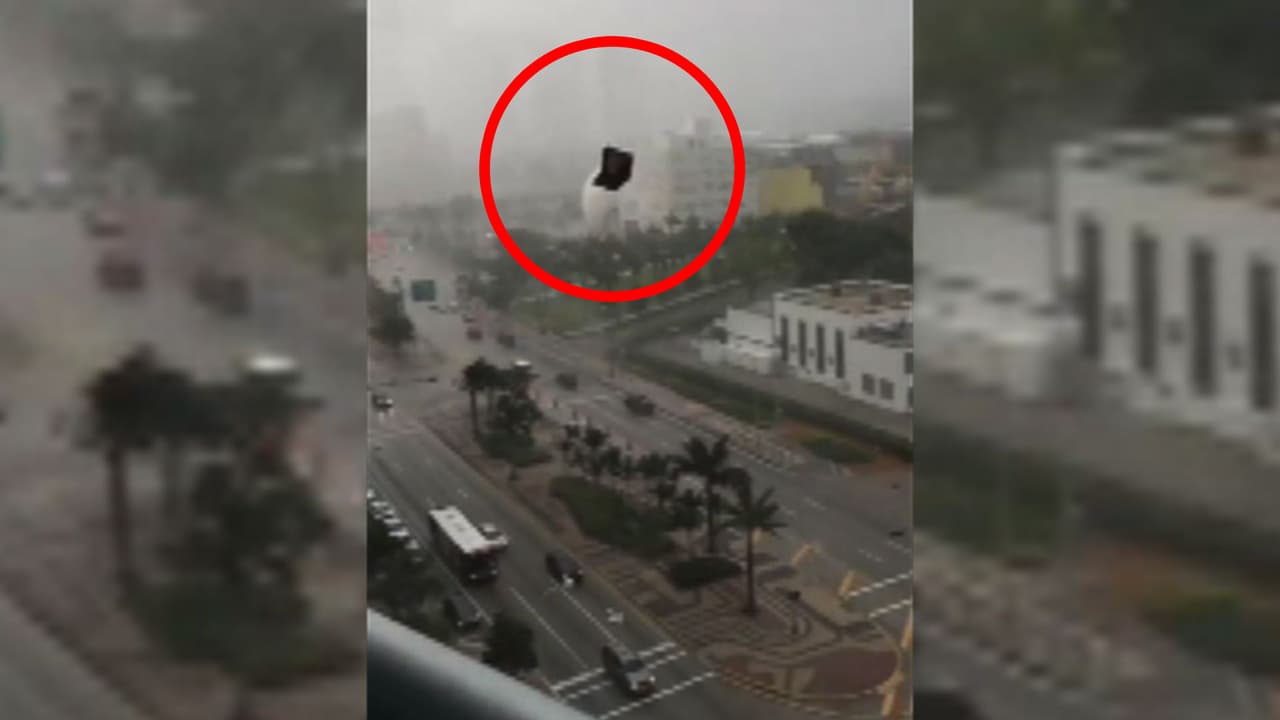 El sábado, testigos grabaron cómo la fuerza del viento sacaba de los balcones de los apartamentos muebles de patio y los hacía volar hasta caer en medio o al otro lado de la calle.