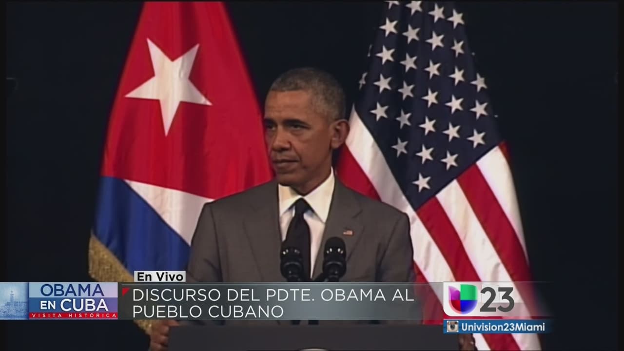 Obama dijo que había llegado a Cuba para enterrar el último vestigio de la guerra fria en las Américas y extenderle una mano amiga al pueblo cubano.