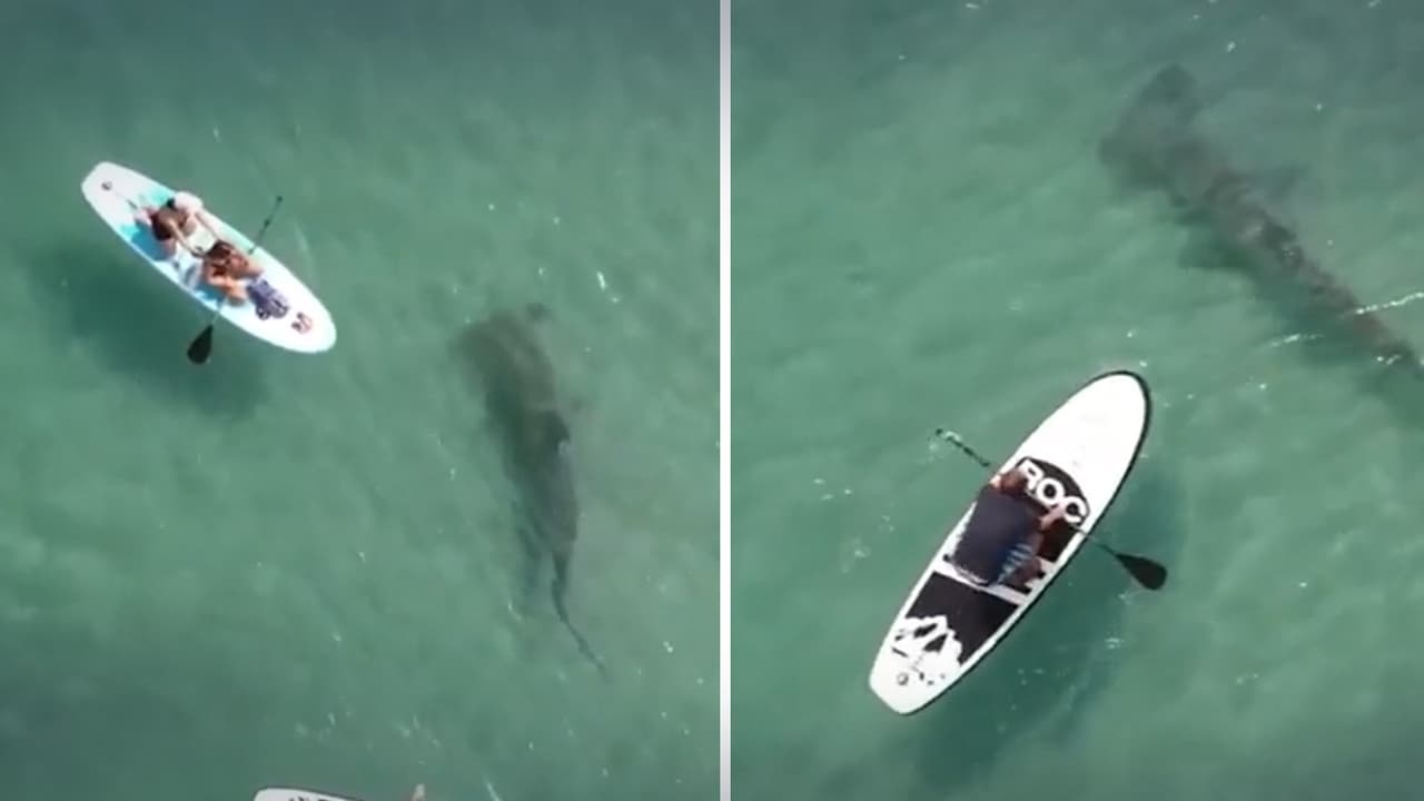 En el video se aprecia a la enorme especie ir y venir entre estas dos tablas de paddle y a las personas que estaban sobre ellas quedarse muy quietos.