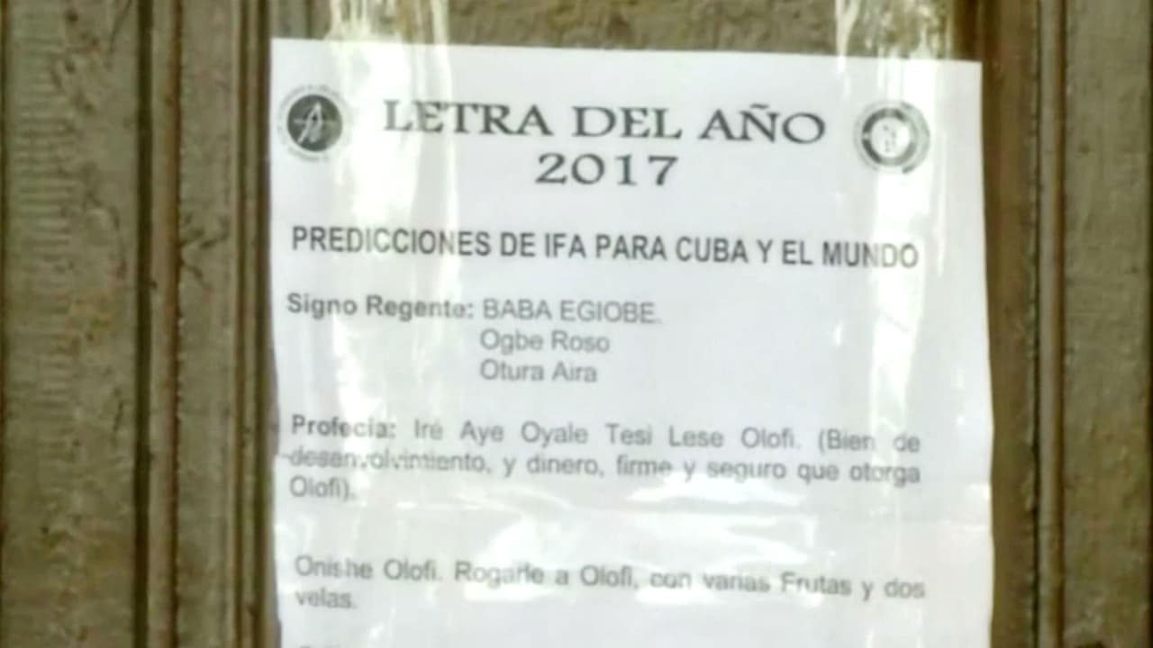 Las predicciones de la santería son publicadas en lo que se denomina como 'La Letra del Año'. Para el 2017 los sacerdotes yorubas dicen que los Orishas han determinado que será el año de la reconciliación con las buenas costumbres.