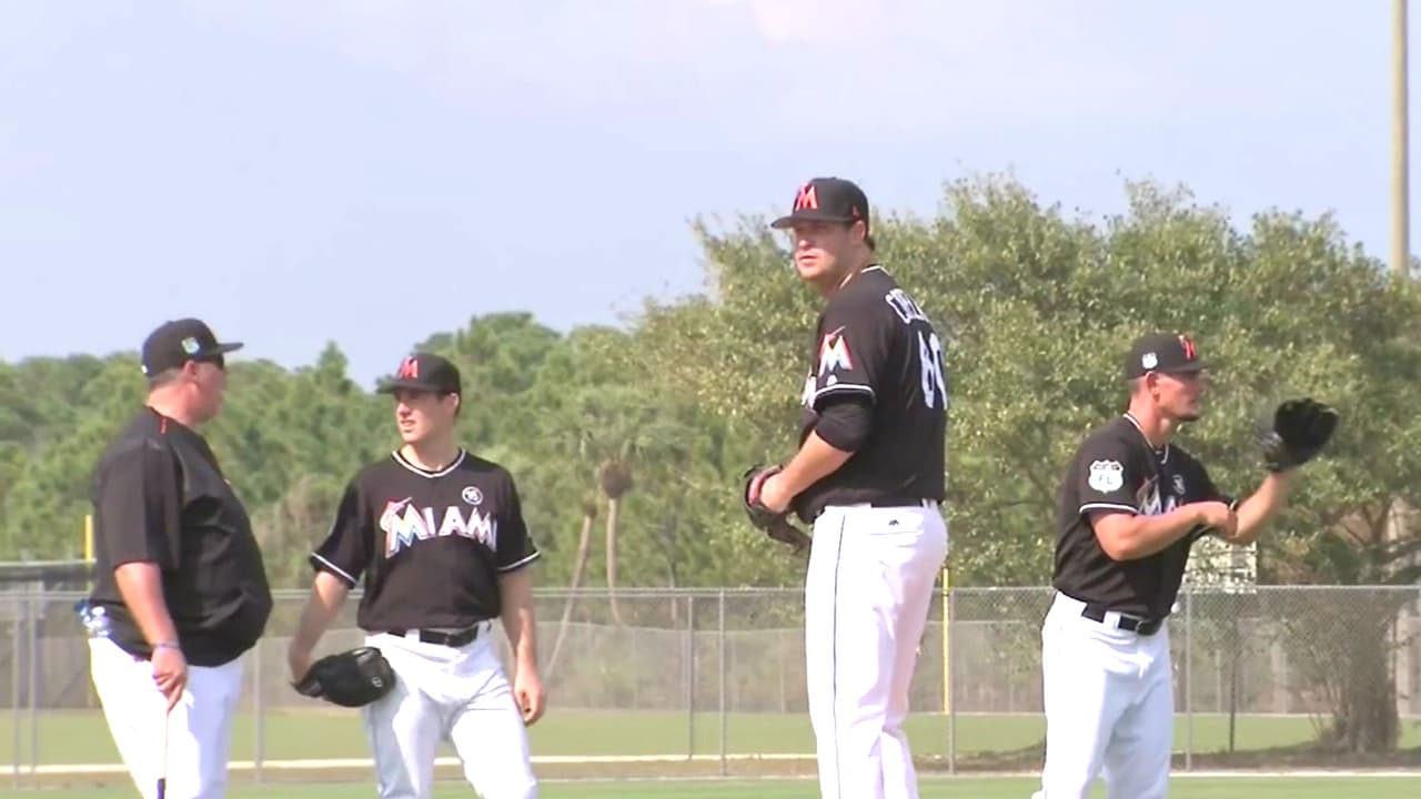 Los Miami Marlins se presentan en el inicio de la pretemporada en Jupiter, Florida