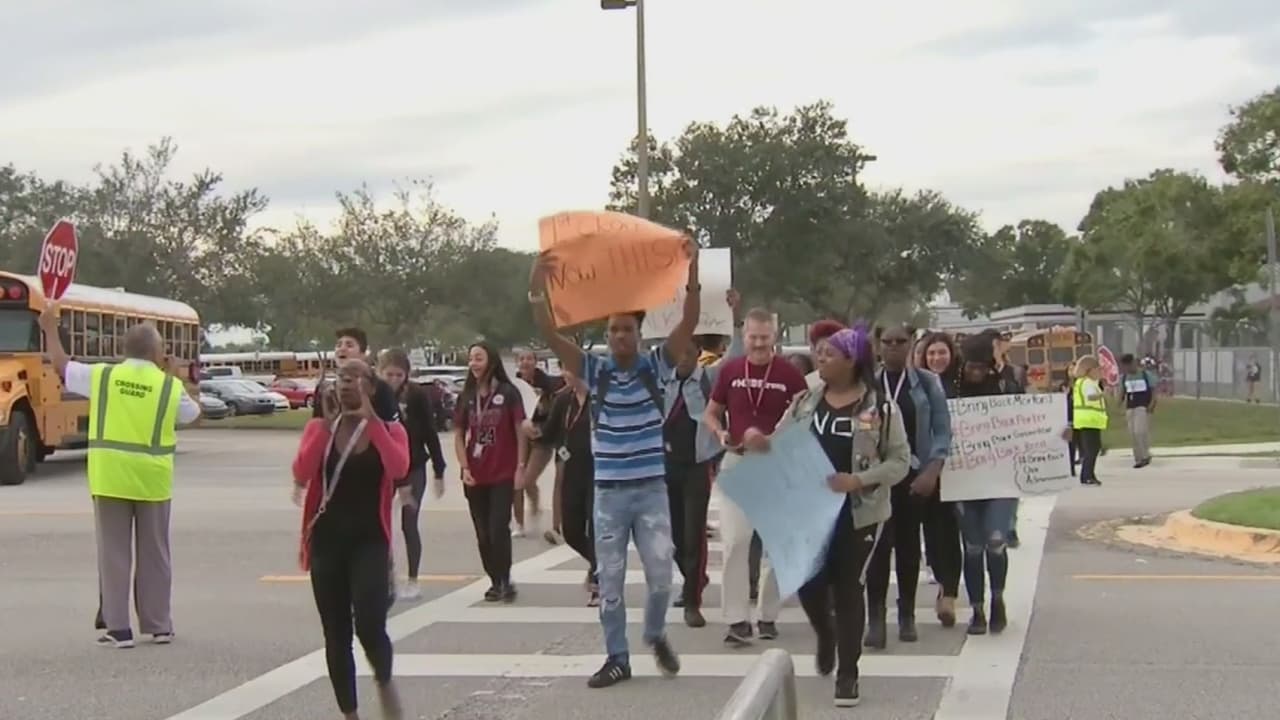 Maestros y estudiantes protestan por la reubicación de cuatro empleados de la Secundaria Marjory Stoneman Douglas