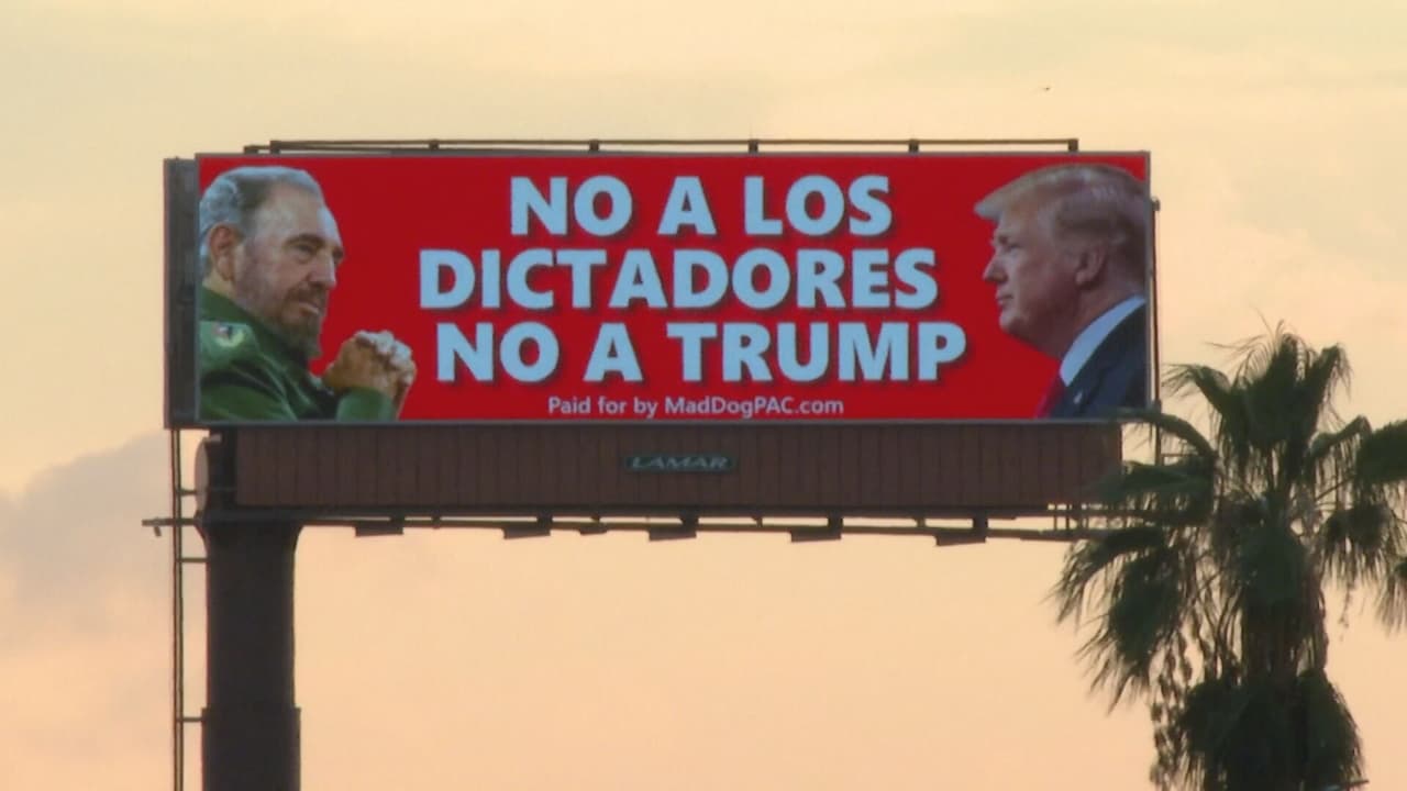 Una valla publicitaria instalada cerca de la autopista Palmetto, donde se compara a Donald Trump con el dictador cubano Fidel Castro, está generando polémica en el exilio cubano. La valla fue pagada por un comité de acción política demócrata y es la primera valla en español del grupo.