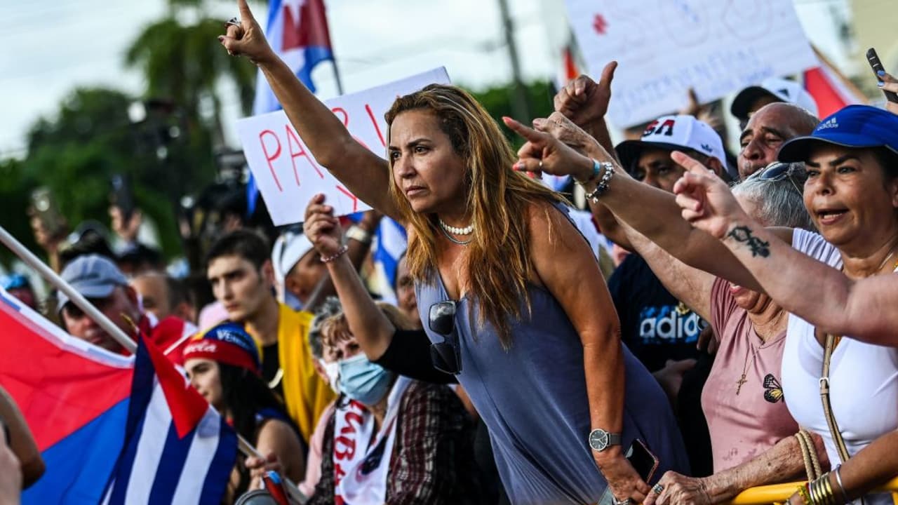 Cientos de personas, con banderas de Cuba en la mano, llegaron en la tarde de este miércoles a las afueras de esta base y empezaron a pedir a gritos que las Fuerzas Armadas de Estados Unidos intervengan en la crisis que está sacudiendo a la isla. Además, hicieron un llamado para que la comunidad internacional aporte en esta lucha por la libertad.