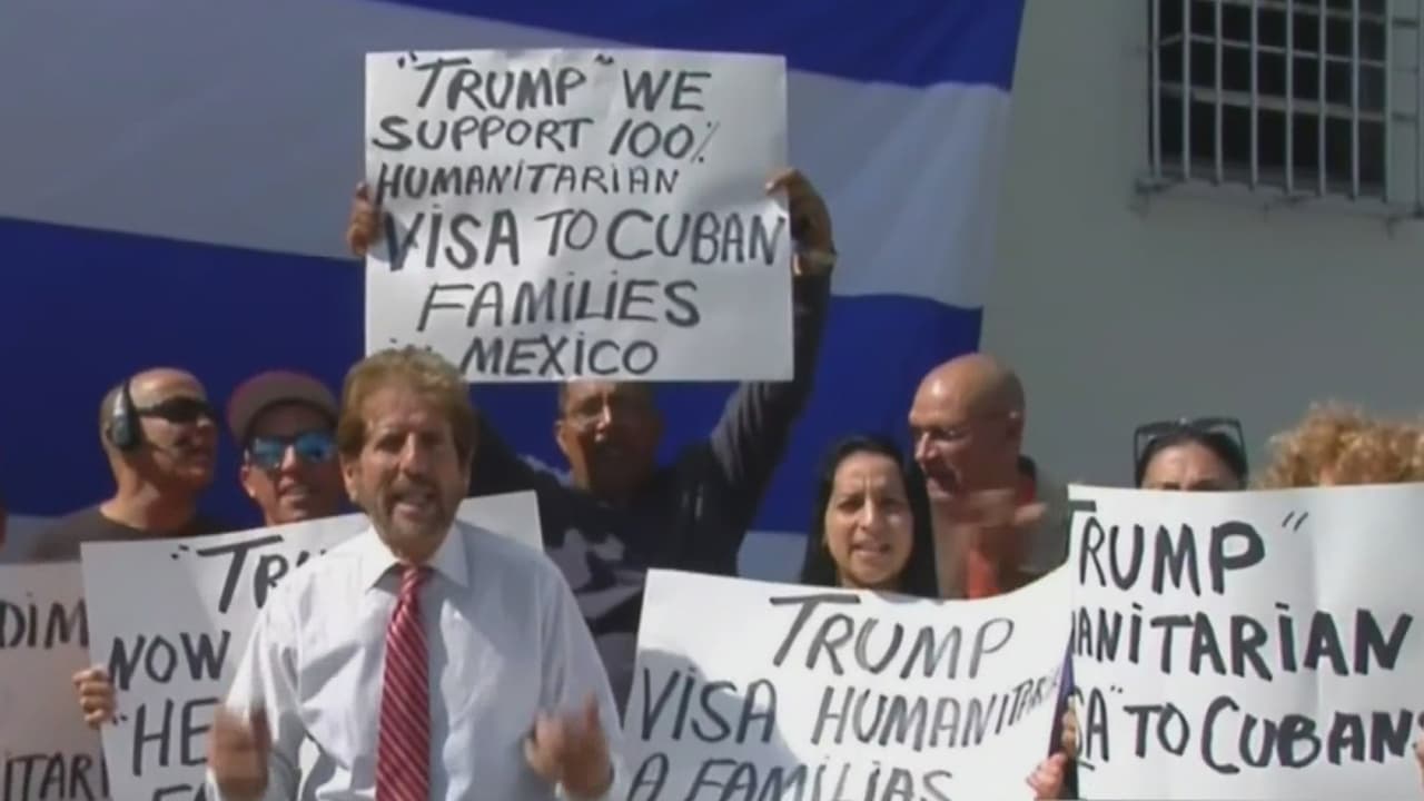 Hubo una protesta en la Calle Ocho por parte de la agrupación Vigilia Mambisa y también familiares de los cubanos que siguen en Nuevo Laredo. Piden al presidente Trump que ayude a las casi 700 personas varadas.