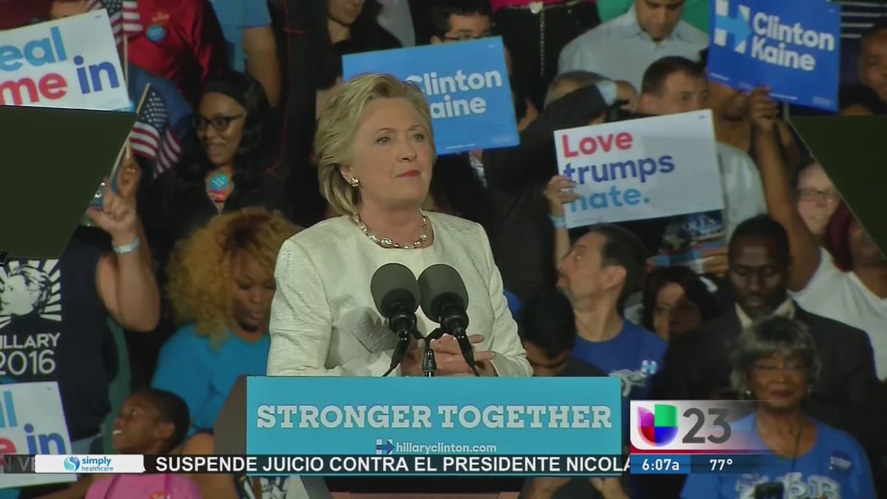 La candidata presidencial demócrata, Hillary Clinton, hizo campaña este martes en el sur de Florida donde cientos de simpatizantes aguardaron por su aparición por un largo rato.