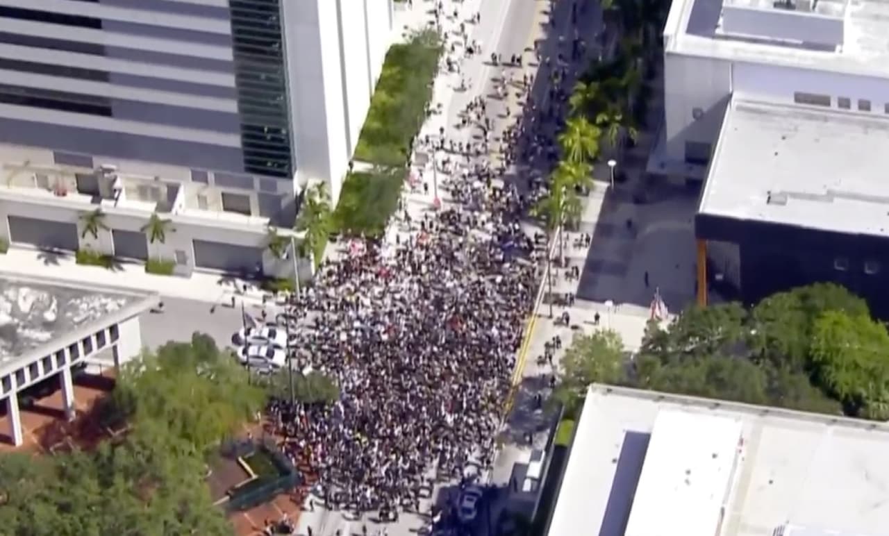 Miami se suma a las protestas por la muerte del afroestadounidense George Floyd, a manos de un policía blanco en Minneapolis, Minnesota. Las personas se concentraron en el Downtown de Miami, en donde recorren varias calles. También en Coral Gables, otro grupo se reunió para manifestar.