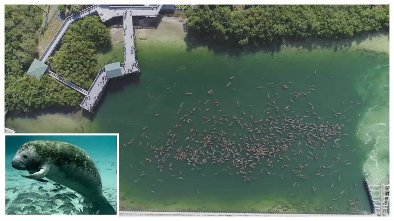 Un número récord de manatíes que se concentraron en Tampa, llegaron a reunirse hasta 1,100 de estas vacas marinas en un mismo lugar, fueron captados en cámara. Los manatíes son sensibles a las bajas temperaturas y las aguas poco profundas tienden a ser más cálidas.