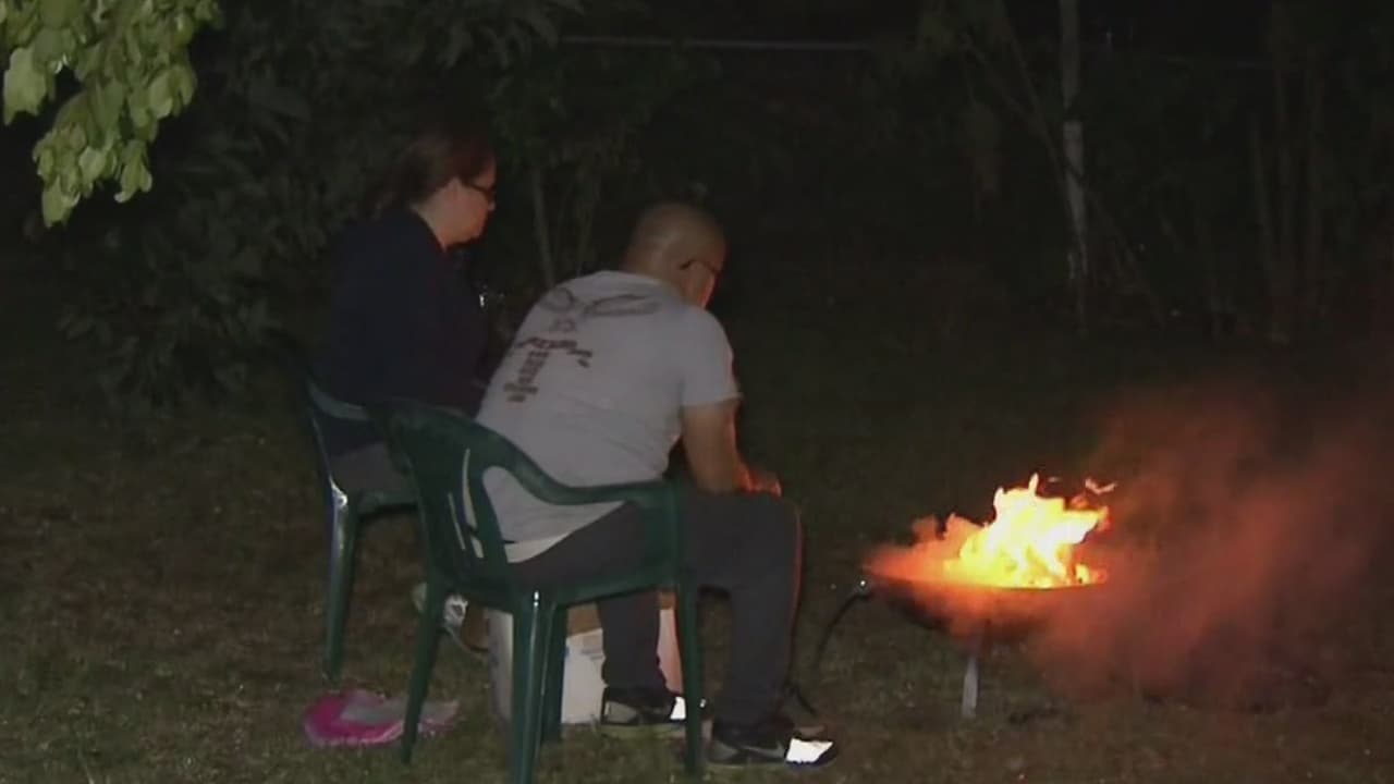 Algunos residentes se ven obligados a pasar la noche bajo una fogata mientras otros desempolvan generadores de energía. Técnicos trabajan incansablemente para restaurar el servicio.