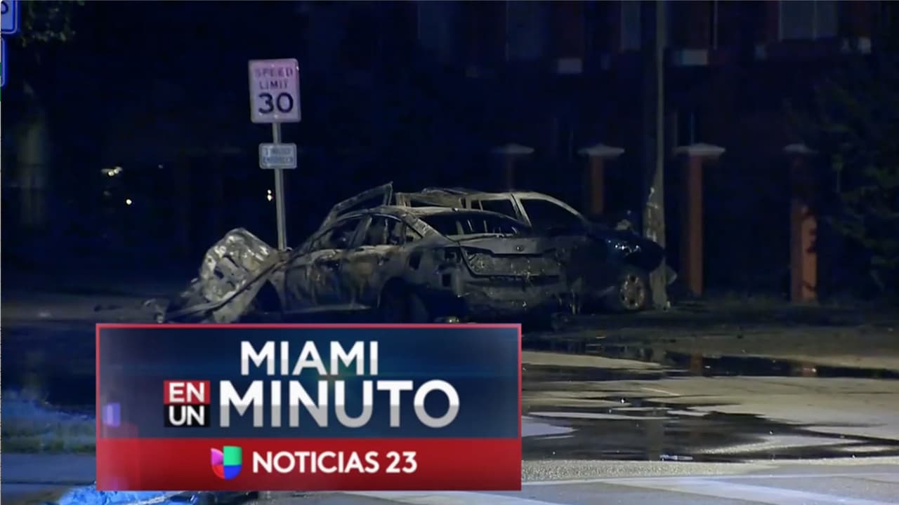 'Miami en un Minuto': dos vehículos chocaron y provocaron incendio que habría sido causado por un tiroteo
