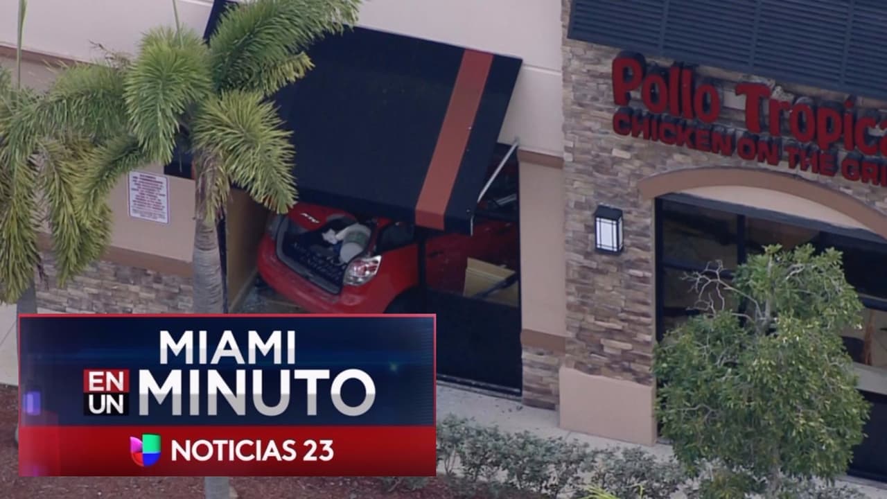 'Miami en un Minuto': Policía investiga choque de un auto contra un restaurante de pollo en Davie