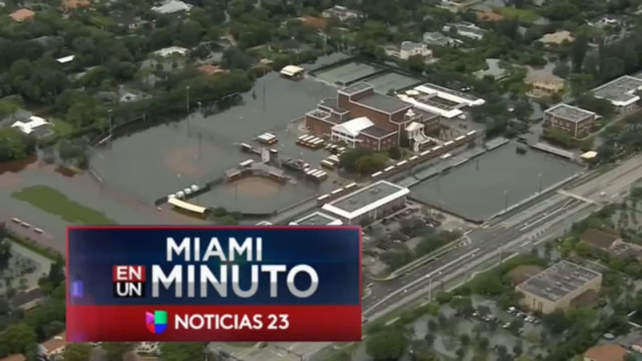 En un minuto también te informamos que la policía de Hialeah busca al menos a tres ladrones que emboscaron a una mujer cuando salía de su casa y le robaron su cartera, y sobre las millonarias pérdidas por el mal tiempo y las inundaciones.