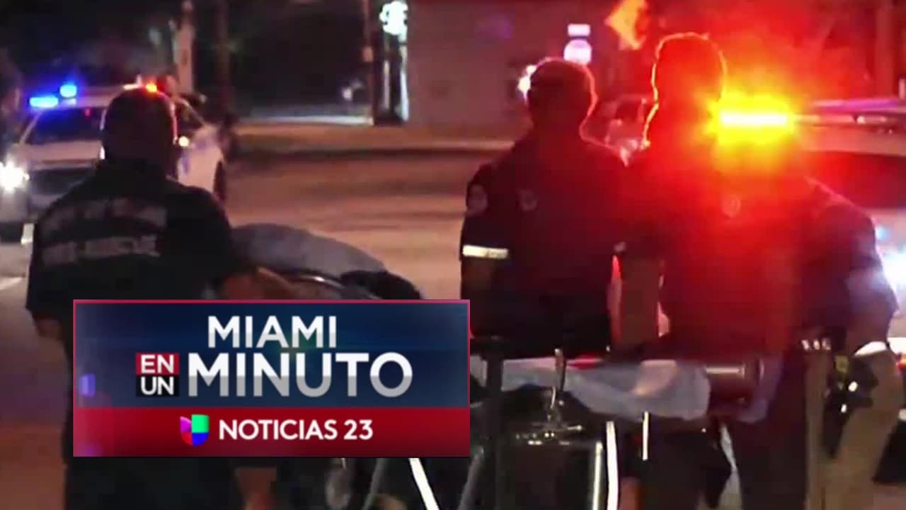 En un minuto también te informamos que el propietario de una casa baleó mortalmente a un hombre que irrumpió en su vivienda en el noroeste de Miami. En otras noticias, las autoridades buscan a tres sujetos señalados de huir luego de balear a un hombre en los brazos.