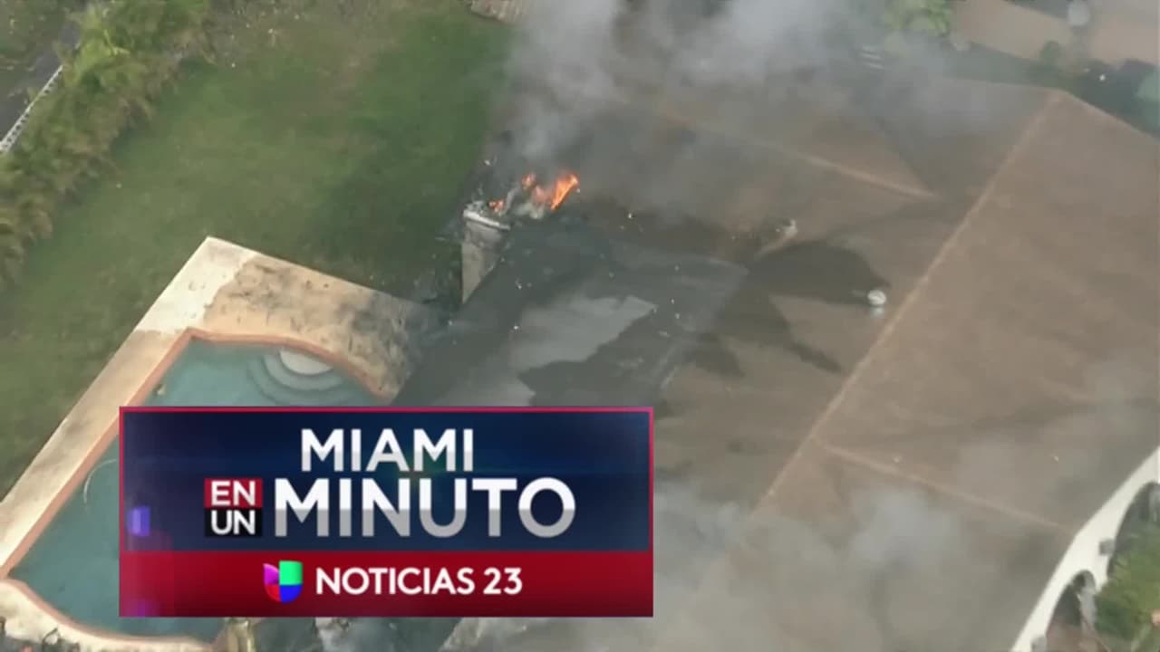 Las autoridades investigan el origen del incendio. En otras noticias, la policía de Miami Beach busca al responsable de un asesinato en un complejo de apartamentos y hoy llega al puerto de Everglades uno de los cruceros donde viajaban las víctimas del accidente de México.