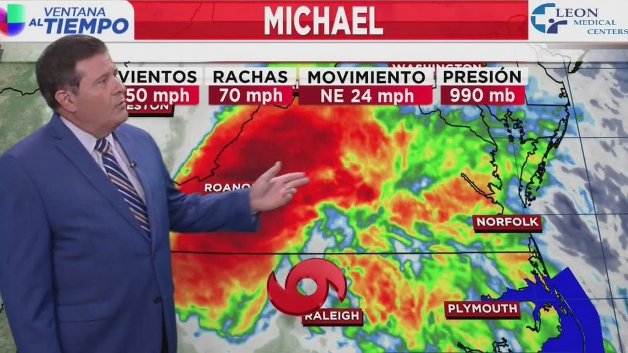 El meteorólogo Eduardo Rodríguez explica que Michael se ha movido a través de tres estados y mantiene ráfagas de 70 millas por hora. La vigilancia por tornado se extenderá hasta este jueves a las 9:00 pm.