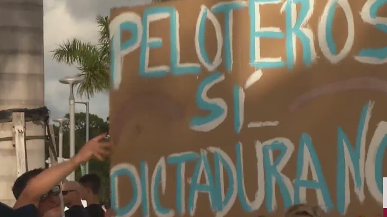 Miembros del exilio llegan Port St. Lucie para alzar una voz de protesta en juego de béisbol entre Cuba y Canadá