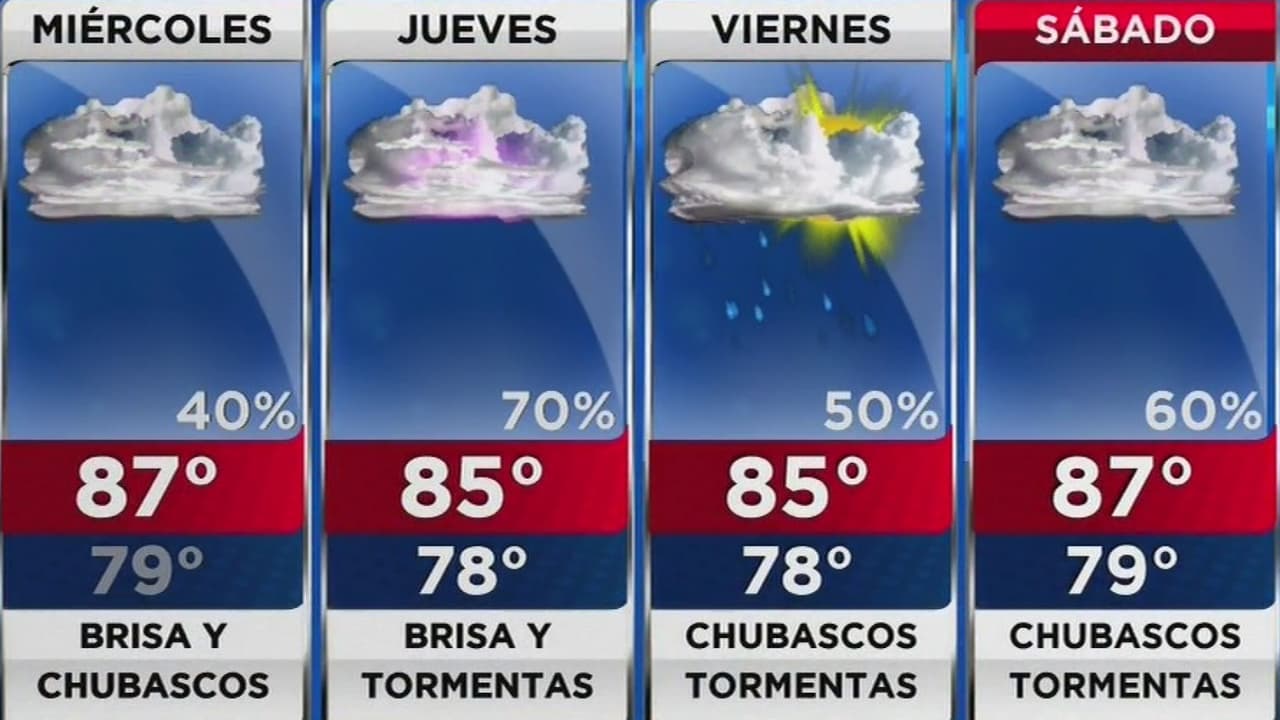 Será un día mayormente nublado, con probabilidad de brisa y lluvia. La temperatura máxima alcanzará los 87 grados.