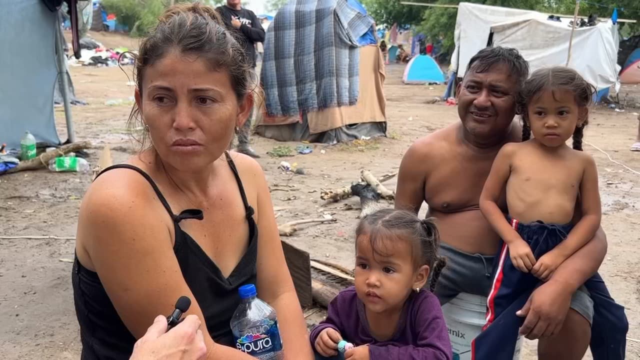 Una familia de venezolanos con hijos pequeños vive en una pequeña carpa al lado del río Grande en la ciudad fronteriza de Matamoros con la esperanza de cruzar la frontera al terminar el Título 42. Mientras tanto oficiales de la Patrulla Fronteriza advierten a los migrantes en altavoces no cruzar hacia Estados Unidos.