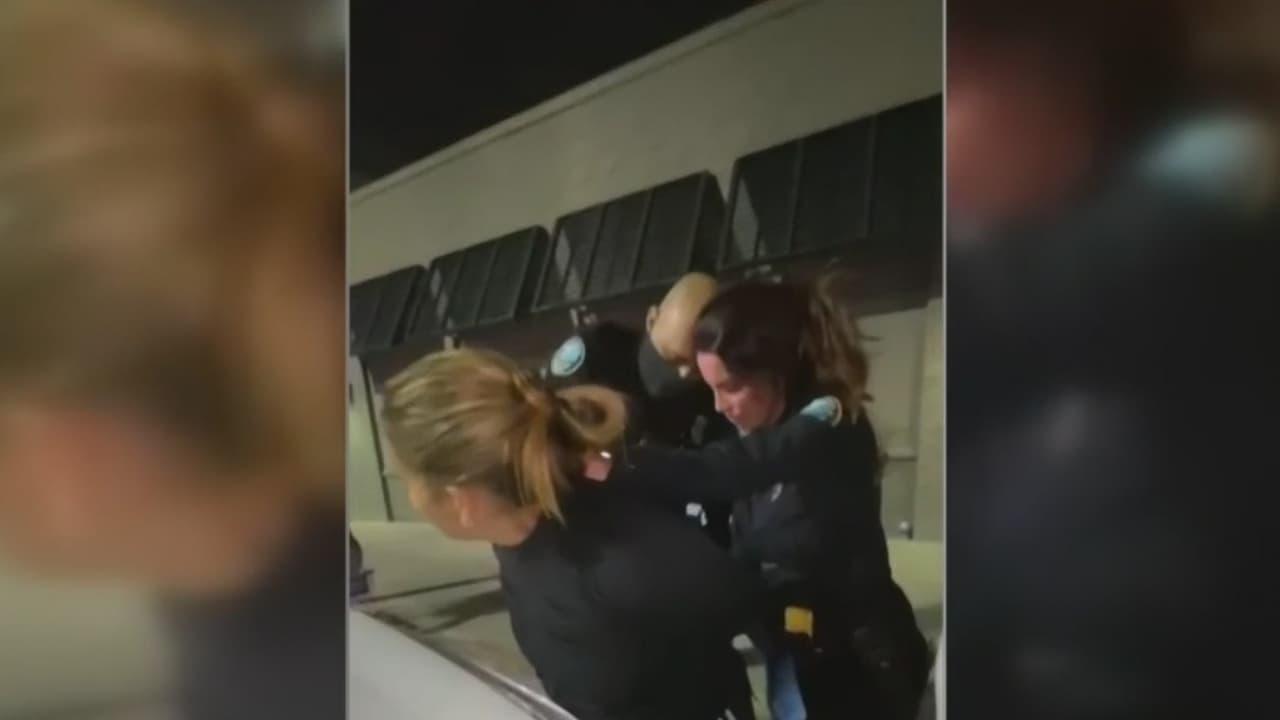 El momento quedó grabado en video por la cámara corporal de uno de los policías y también se ve cuando la mujer es arrestada.