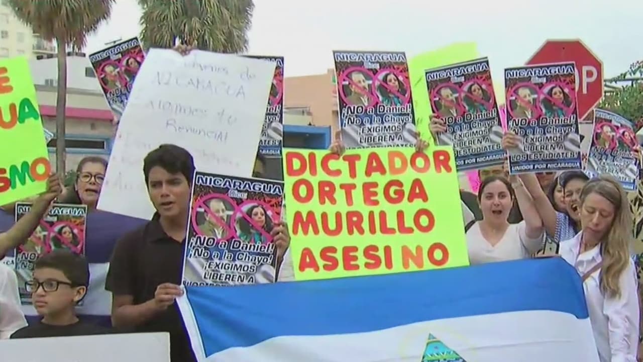 Nicaragüenses protestan frente al consulado en Miami y piden la salida de Daniel Ortega