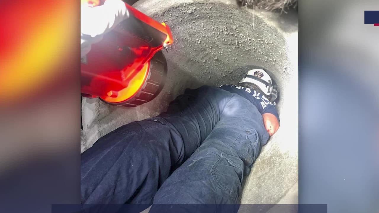 Los bomberos intentaron todo para sacar al menor quien estaba jugando cuando su pierna quedó atascada dentro de una tubería. Los rescatistas usaron lubricante, agua y otras técnicas, pero no tuvieron un buen resultado, finalmente decidieron taladrar para sacarlo.