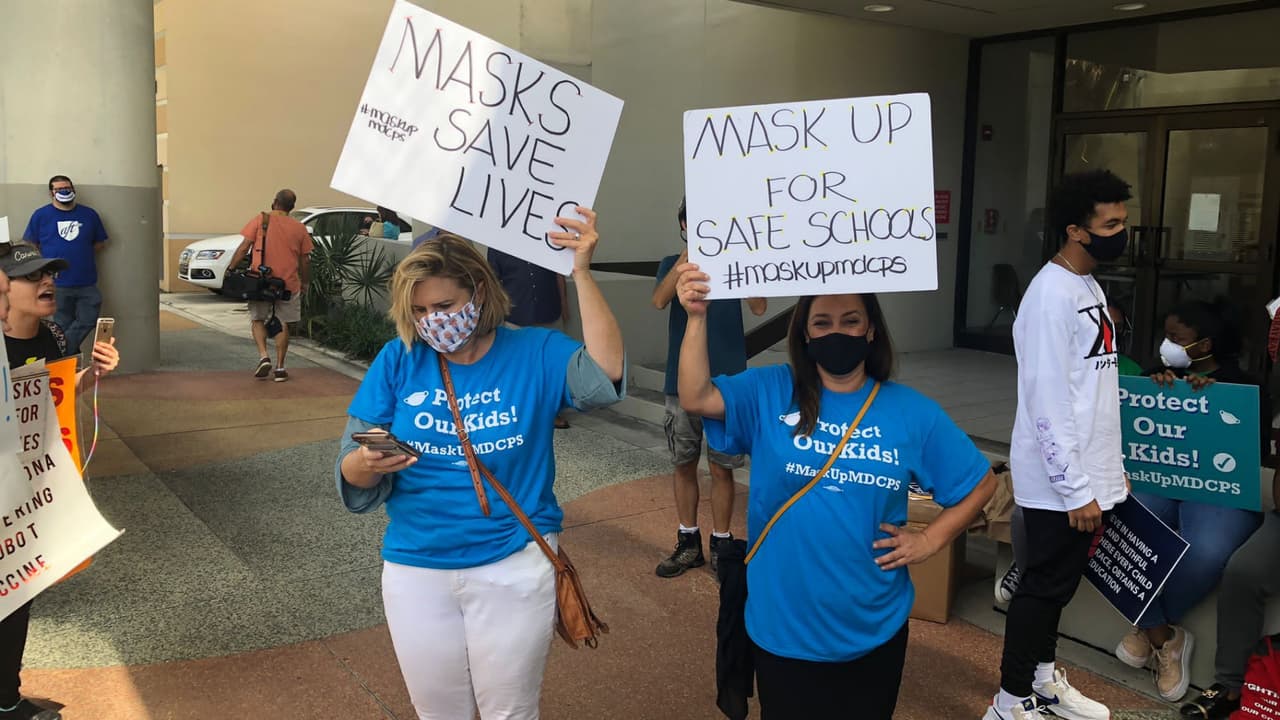 "No podemos perder ni una vida más": padres de Miami-Dade se manifiestan a favor y en contra de las mascarillas