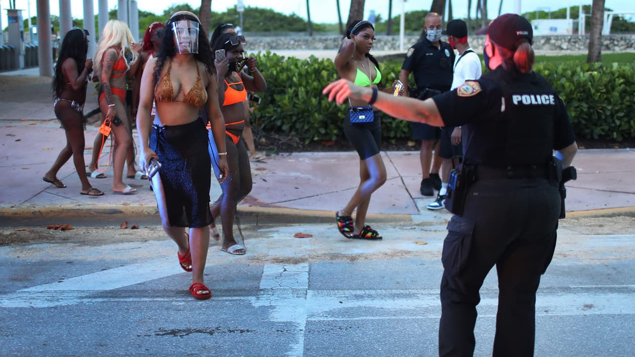 Videos en las redes sociales muestran a dos mujeres bailando sobre una patrulla de la policía y grandes aglomeraciones en South Beach, por las vacaciones de Spring Break.