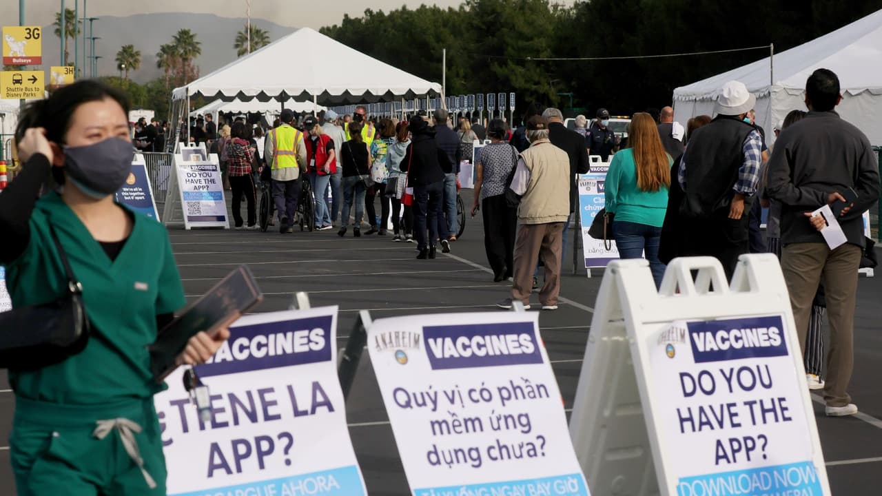 Miles de personas se registran para vacunarse contra el covid-19 en Disneyland