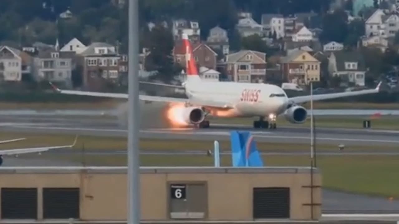 En video: Fuego y humo en un motor de avión de Swiss Airlines en el aeropuerto de Boston