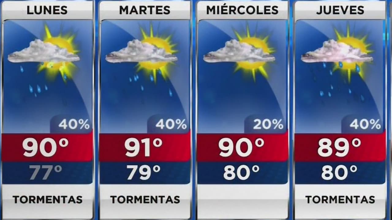 Las condiciones lluviosas continúan en el sur de Florida, donde además se mantienen las probabilidades de tormenta. La máxima temperatura para hoy en Miami será de 90 grados.