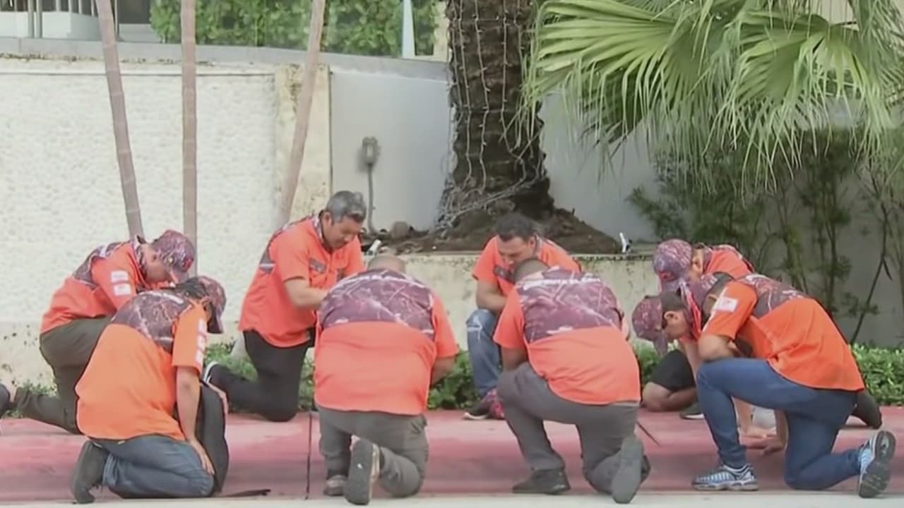 Este sábado, un grupo de hombres llegó hasta el centro de reunificación familiar para pedir por quienes se estaban dentro del edificio Champlain Towers cuando se desplomó y por sus seres queridos. “Nuestra ayuda es pedirle a un ser supremo, a Dios”, afirma Joshua Catalán, uno de los participantes.