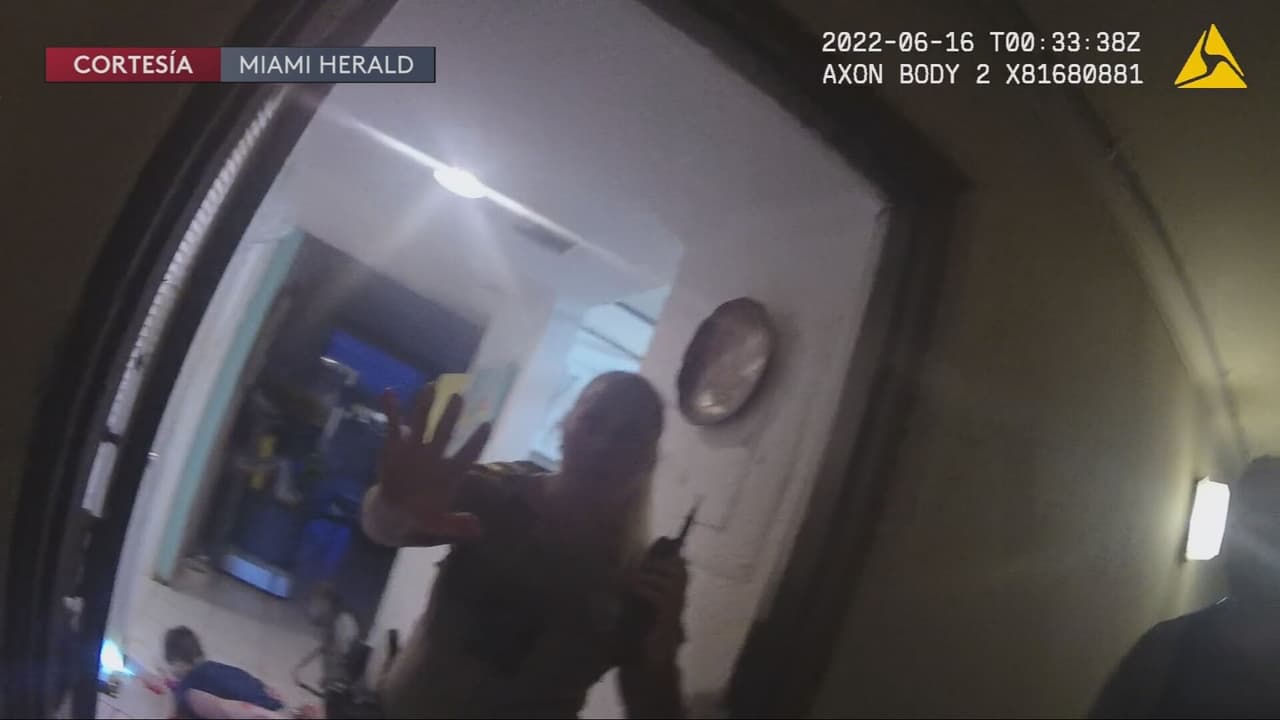 Un video, cortesía de The Miami Herald, tomado de la cámara corporal de otro oficial del sheriff de Miami-Dade, muestra a la oficial acusada mientras atendía una llamada por un delito que no está relacionado con su acusación.